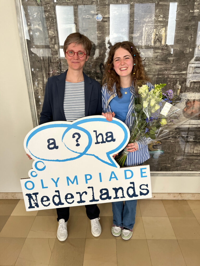 Charlotte Schravendijk van het Stedelijk Gymnasium Haarlem won de Olympiade 2023. Ze onderzocht of volwassenen minder goed een taal leren wanneer het taalaanbod fouten bevat. De jury prees Schravendijk om de wetenschappelijke kwaliteit van haar onderzoek.